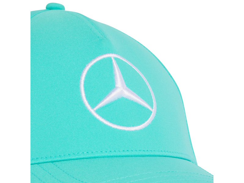 Oficiálna tímová šiltovka Mercedes-AMG Petronas F1 sezóna 2026 je ako stvorená pre fanúšikov elitného závodu. Šiltovka s hviezdou Mercedes vpredu a logom ADIDAS vzadu, nielen dobre vyzerá ale aj výborne sedí na hlave. Je veľkostne nastaviteľná a dostupná v troch farbách – bielej, čiernej a tyrkysovej.